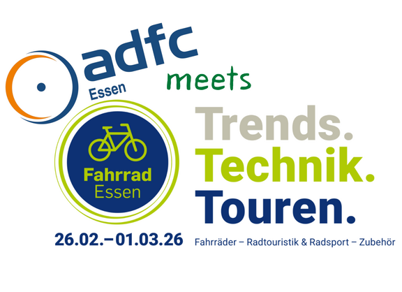 Vom 26.02. - 01.03.2026 ist der ADFC Essen mit einem Messestand auf der Fahrrad Essen vertreten.