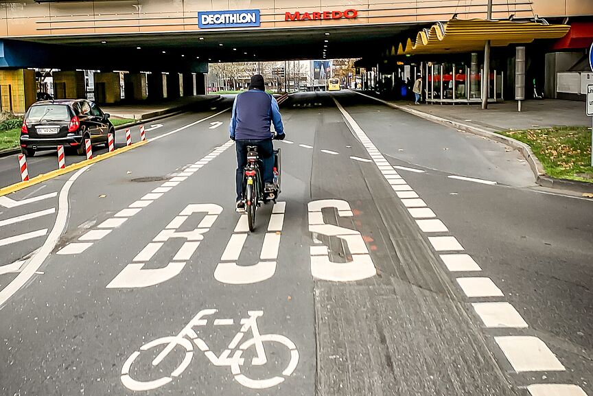 Noch ganz frisch in der Stadt Essen ist die neue Umweltspur, die ausschließlich Busse des ÖNVP als auch Radfahrer benutzen dürfen. Ursprung der Umweltspur waren drohende Dieselfahrverbote. Durch diese Lösung soll die Luft nun auf der stark vom motorisierten Verkehr frequentierten Süd-Nord- bzw. Nord-Süd-Achse verbessert werden. Außerdem sollen die Busse des ÖNVP so eine höhere Pünktlichkeit erreichen und die Radfahrer eine „zentrale Durchgängigkeit der Radachse Süd-Nord sowie die Anbindung an den Radschnellweg RS1, das Universitätsviertel, die Innenstadt sowie den Hauptbahnhof.“ Anmerkung: in Essen gibt es bisher keinen RS1 mit dem die Stadt wirbt, sondern nur die Rheinische Bahntrasse! Das Detail nur am Rande.