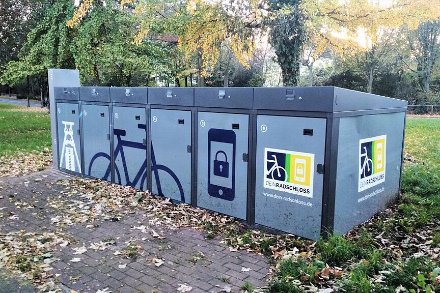 Mit DeinRadschloss kann man ohne großen Aufwand online einen Stellplatz für sein Fahrrad über die ZÄPP-App der Ruhrbahn oder über www.dein-radschloss.de buchen. Hierfür stehen Radfahrenden nach einer kurzen Registrierung Fahrradboxen an acht verschiedenen Standorten in Essen zur Verfügung. Der Zugang erfolgt unkompliziert mit der Abo-Chipkarte des Verkehrsverbunds Rhein-Ruhr (VRR), mit einer speziellen DeinRadschloss-Chipkarte oder mit einem vierstelligen PIN-Code – ganz ohne Schlüsselübergabe.
