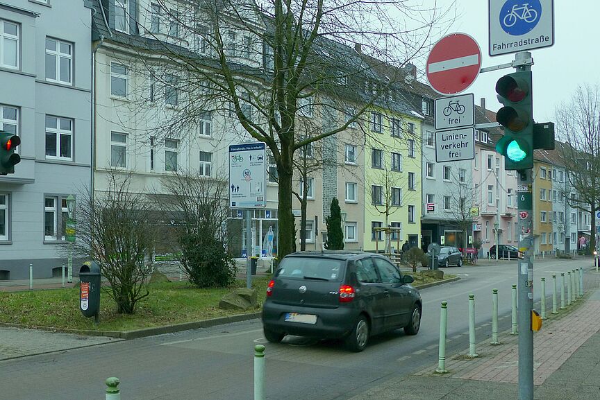 Dass nach nur wenigen Wochen das Einfahrtverbot für Autos von der Huyssenallee zur „Rü“ durch eine verwaltungsgerichtliche Verfügung wieder rückgängig gemacht werden musste, gilt nur für einen winzig kleinen Teilbereich der Gesamtmaßnahme, nämlich den Abschnitt bis zur Baumstraße, und dieses auch nur für Anlieger. Nun fehlt aktuell hinter der Einmündung der Baumstraße ein entsprechendes „Einfahrt verboten“-Schild für die „Rü“, so dass faktisch alle Fahrzeuge ungeniert durchfahren.