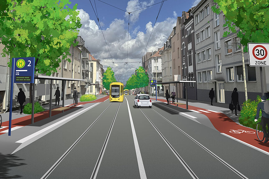 - Einrichtung eines baulich geschützten Radstreifens vom Holsterhauser Platz bis zur Münchener Straße