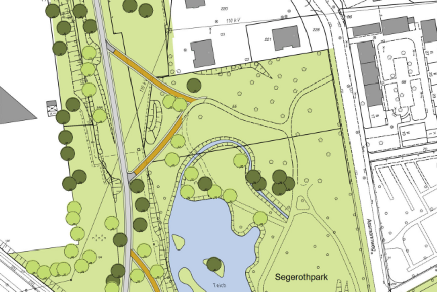 Die Rodungsarbeiten, die im Laufe des Februars abgeschlossen werden, bilden den Startschuss für den zweiten Bauabschnitt der Verbindung: Nachdem bereits Ende 2018 der Abzweig Rheinische Bahn bis zum Segerothpark/ Bottroper Straße inklusive eines Brückenneubaus über die Pferdebahnstraße und landschaftsgärtnerische Arbeiten fertiggestellt wurde, beginnt nun der zweite, im Dezember 2019 vom Rat der Stadt Essen beschlossene Bauabschnitt: die Verbindung zwischen dem Segerothpark und dem Berthold-Beitz-Boulevard. Im Zuge dessen soll zur Fortsetzung des Grünzugs Zangenstraße nun eine Brücke über die Bottroper Straße entstehen, welche sowohl die beiden Parkhälften nördlich und südlich der Bottroper Straße verbindet, als auch die Weiterführung des Grünzuges nutzerfreundlich und barrierefrei gestaltet. Zudem sind in den Planungen kurze Anschlusswege zwischen Segerothpark und Grünzug berücksichtigt. Eine Fertigstellung ist für 2022 geplant.