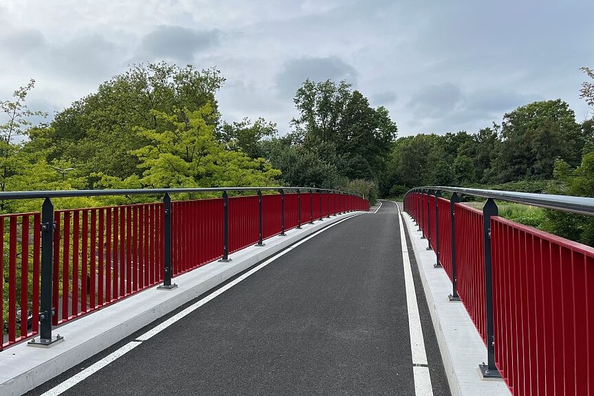 Im Januar letzten Jahres wurde mit den Arbeiten für den Neubau der Brücke über die Bottroper Straße begonnen. Während die Fertigung des Stahlbaus der Brücke im Werk stattfand, wurden bereits ein Großteil der Landschafts- und Wegebauarbeiten umgesetzt. Mit Beginn dieses Jahres konnten die beiden Stahlträger des Querungsbauwerks erfolgreich eingehoben und die weiteren Arbeiten bis zur Fertigstellung der Brücke im Juni ausgeführt werden. Im Juni wurden dann die Wegebauarbeiten mit den Anschlüssen an den Brückenneubau fortgesetzt und wie geplant abgeschlossen.