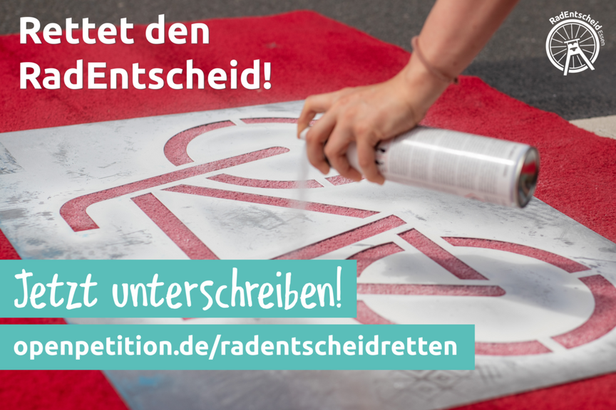 Mit der Petition fordert der RadEntscheid Essen den Rat der Stadt auf, den Ausstieg aus dem RadEntscheid zu stoppen und stattdessen endlich Schritte für eine sichere und