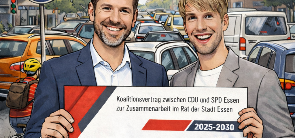 "Essen gemeinsam gegen die Wand fahren" Ihre CDU & SPD Essen © ADFC Essen (mit KI)